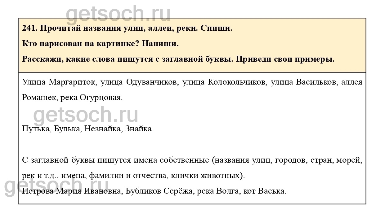 241. Прочитай названия улиц, аллеи, реки. Спиши.