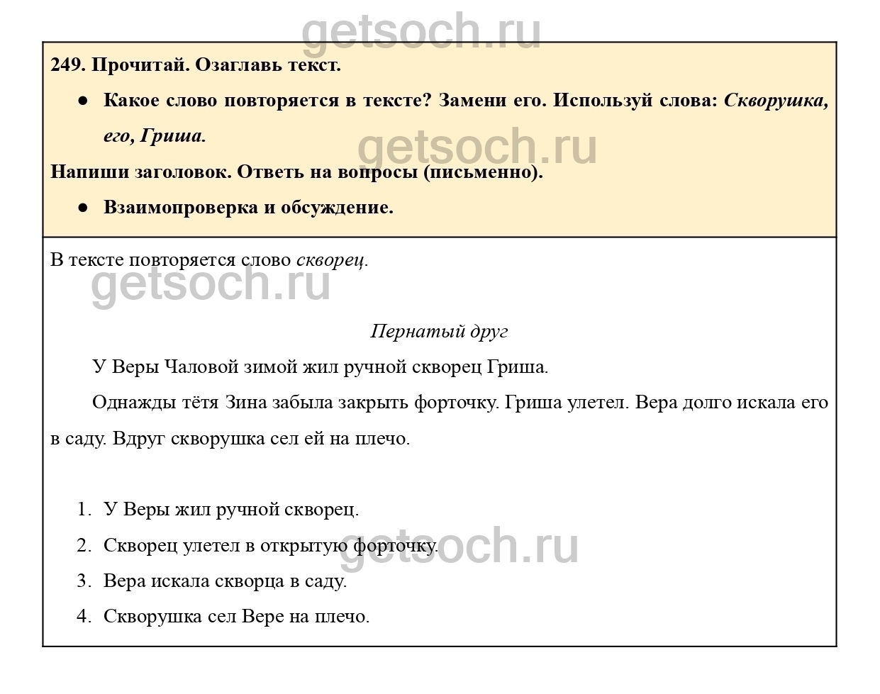 Рассмотрим ответы на Упражнение 249 из учебника по русскому языку для 2 класса Рамзаевой