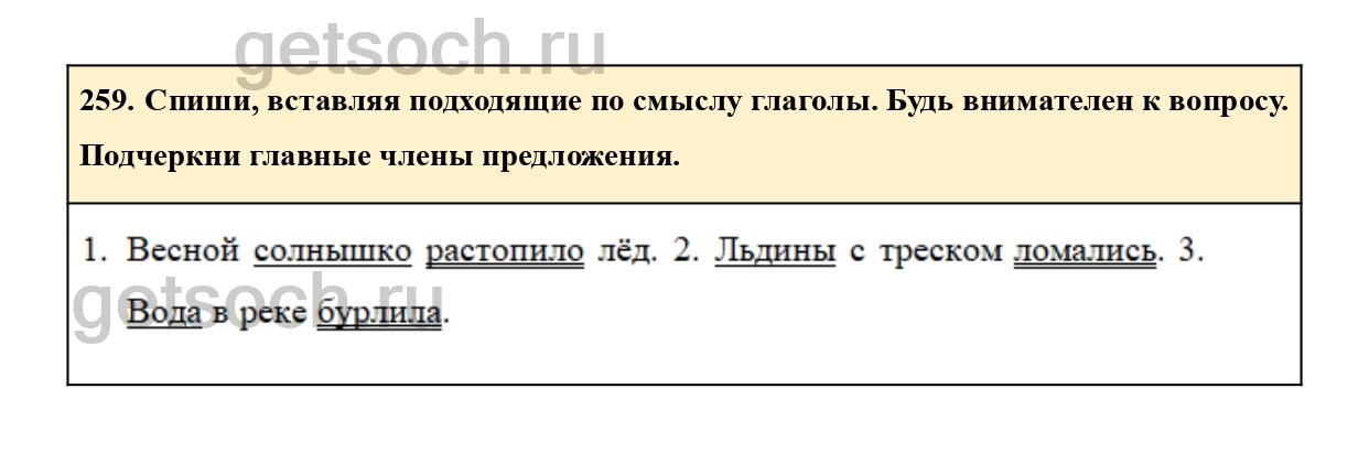 259. Спиши, вставляя подходящие по смыслу глаголы. Будь внимателен к