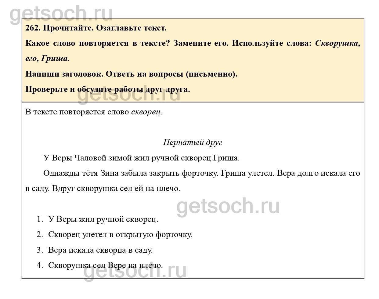 Рассмотрим ответы на Упражнение 262 из учебника по русскому языку для 2 класса Рамзаевой