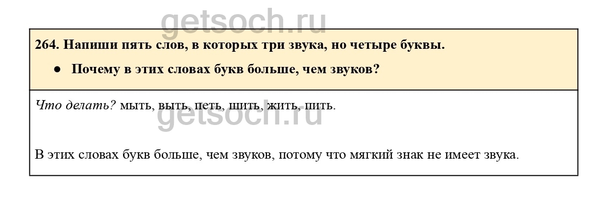 264. Напиши пять слов, в которых три звука, но четыре буквы.