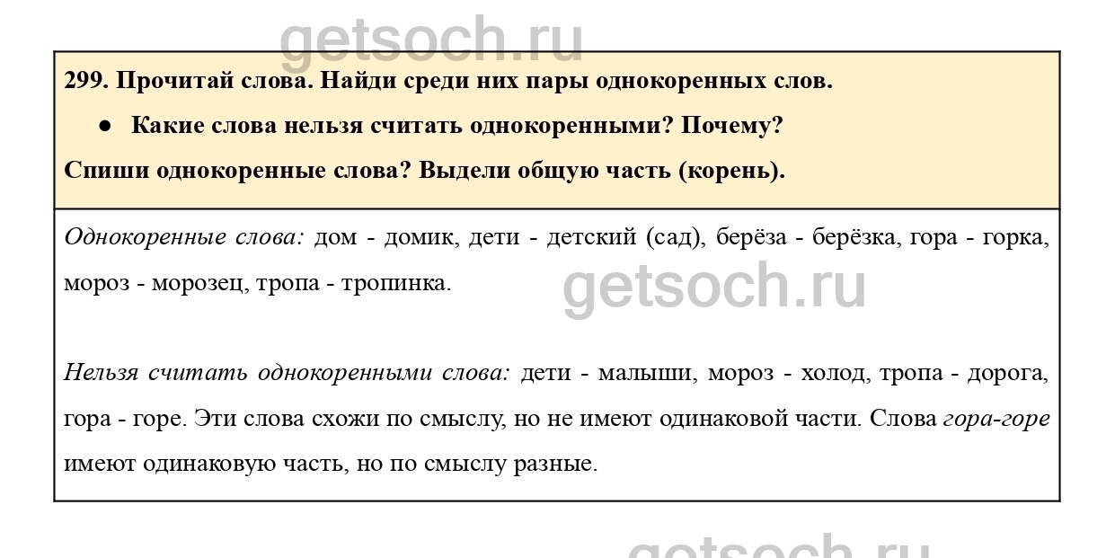 299. Прочитай слова. Найди среди них пары однокоренных слов.