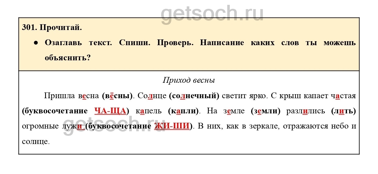 Рассмотрим ответы на Упражнение 301 из учебника по русскому языку для 2 класса Рамзаевой