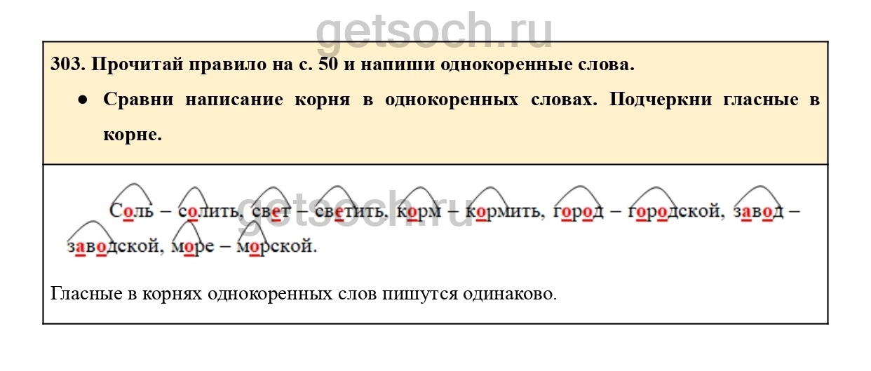 303. Прочитай правило на с. 50 и напиши однокоренные слова.