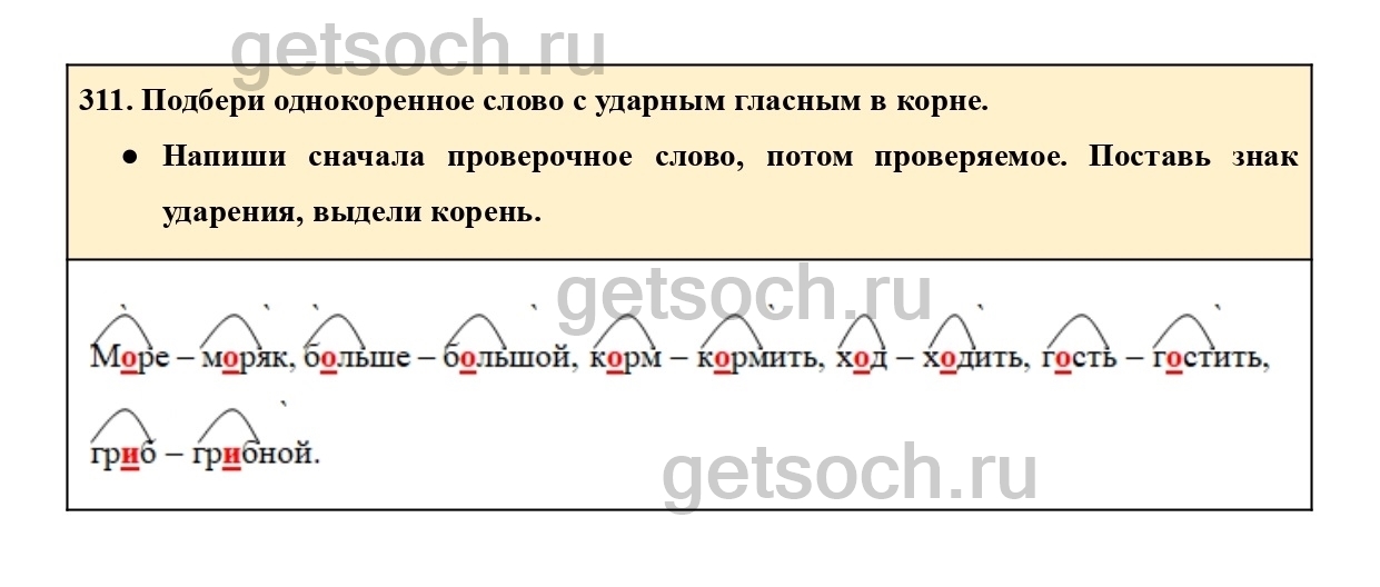 311. Подбери однокоренное слово с ударным гласным в корне.