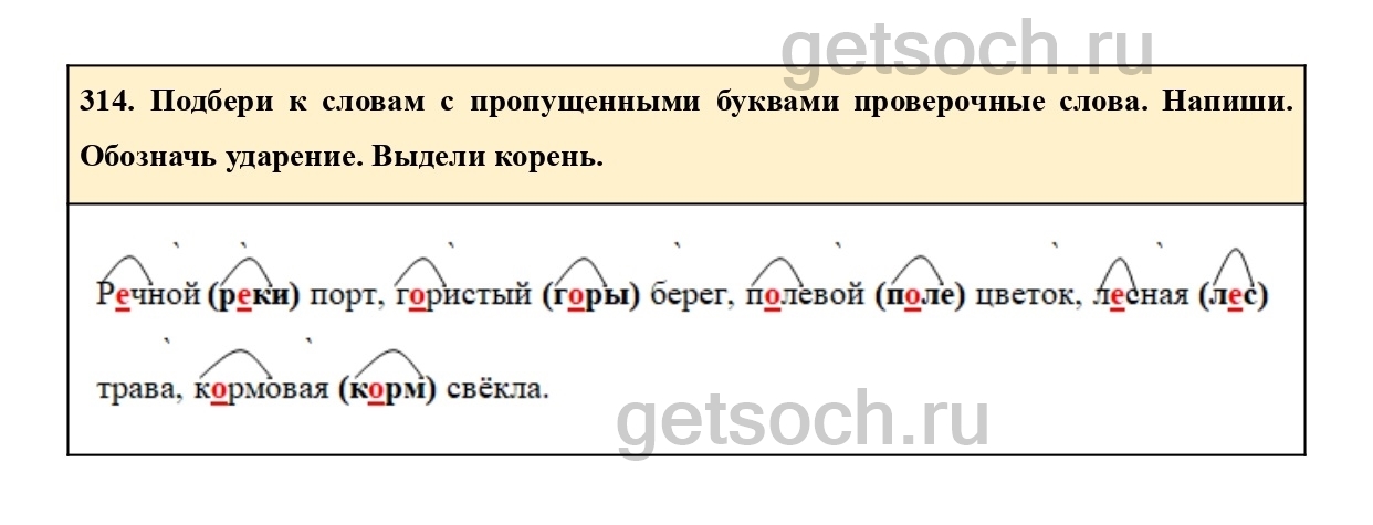 314. Подбери к словам с пропущенными буквами проверочные слова. Напиши.