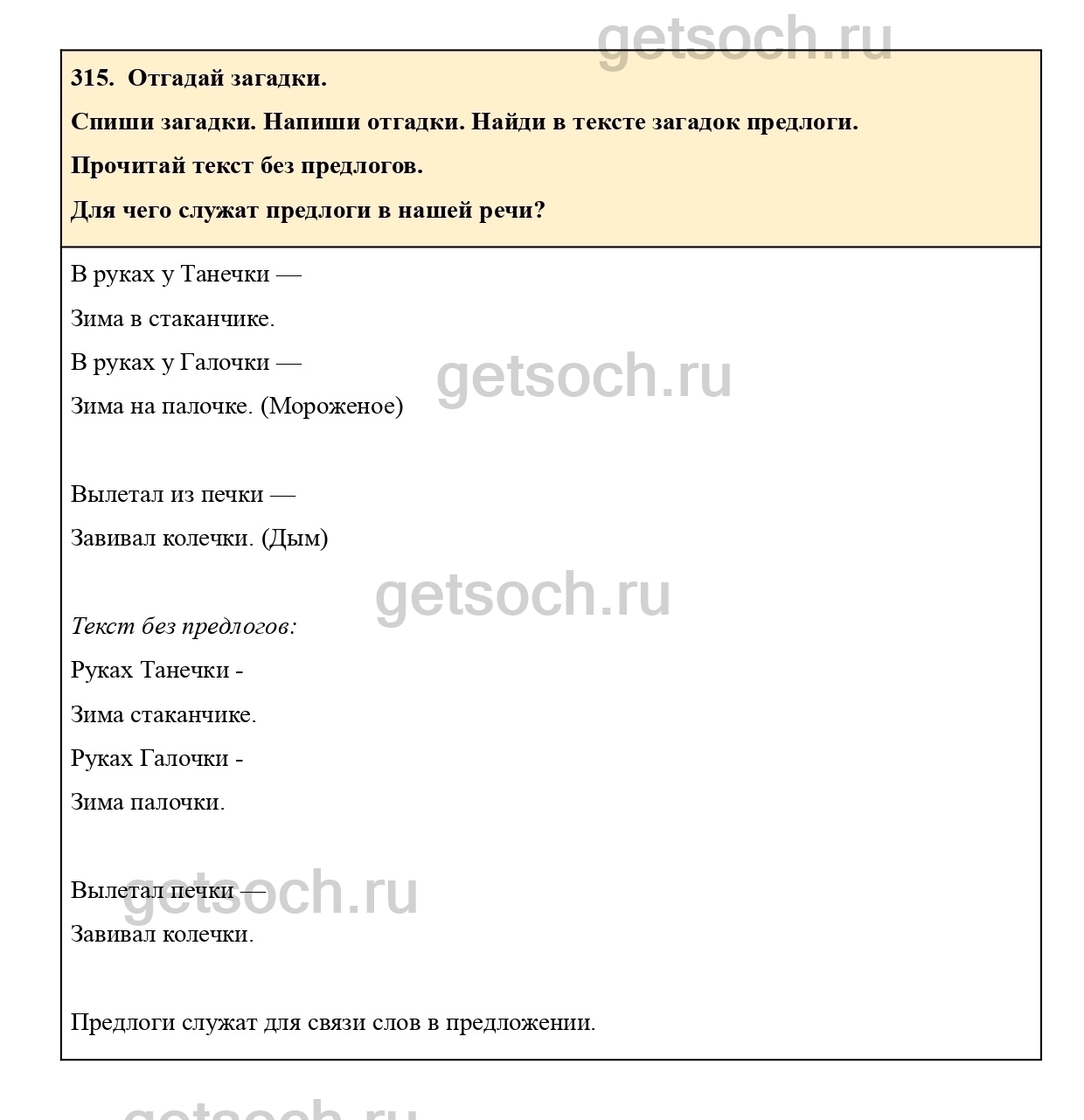 Рассмотрим ответы на Упражнение 315 из учебника по русскому языку для 2 класса Рамзаевой