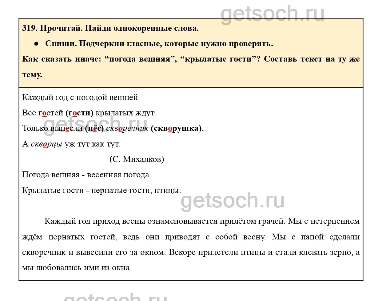 319. Прочитай. Найди однокоренные слова.