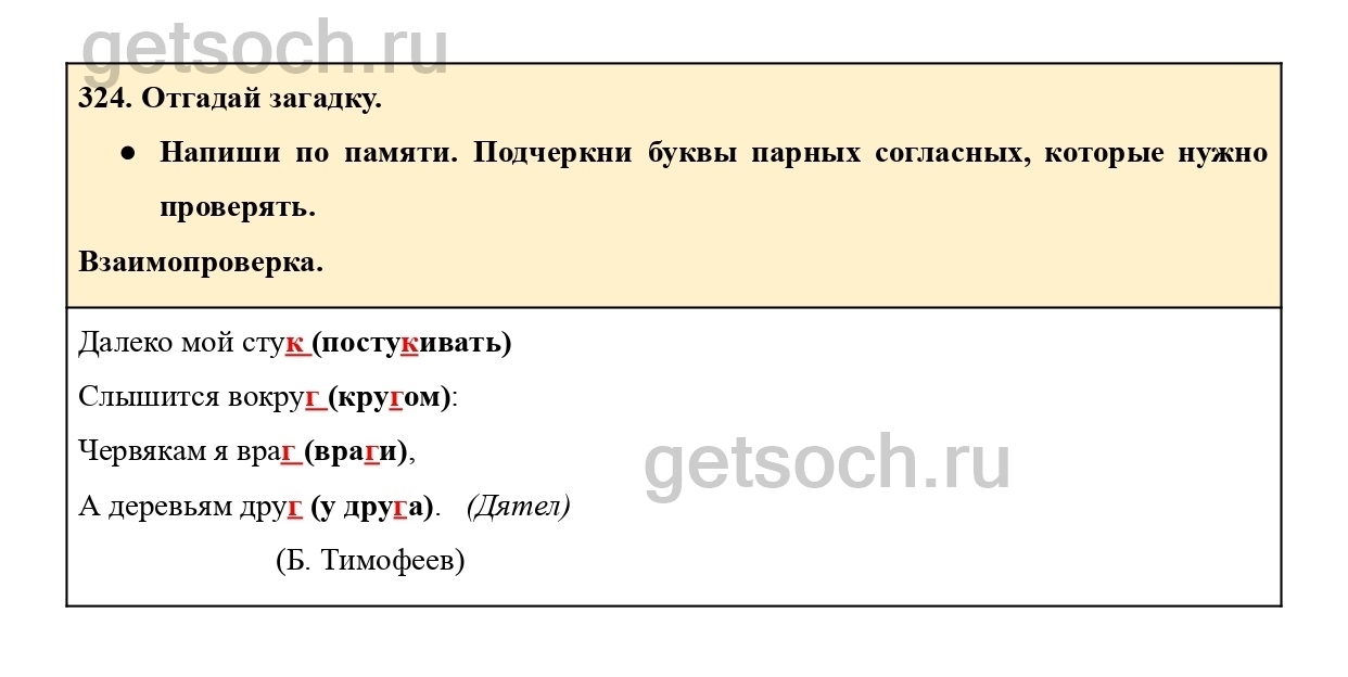 ● Напиши по памяти. Подчеркни буквы парных согласных, которые нужно