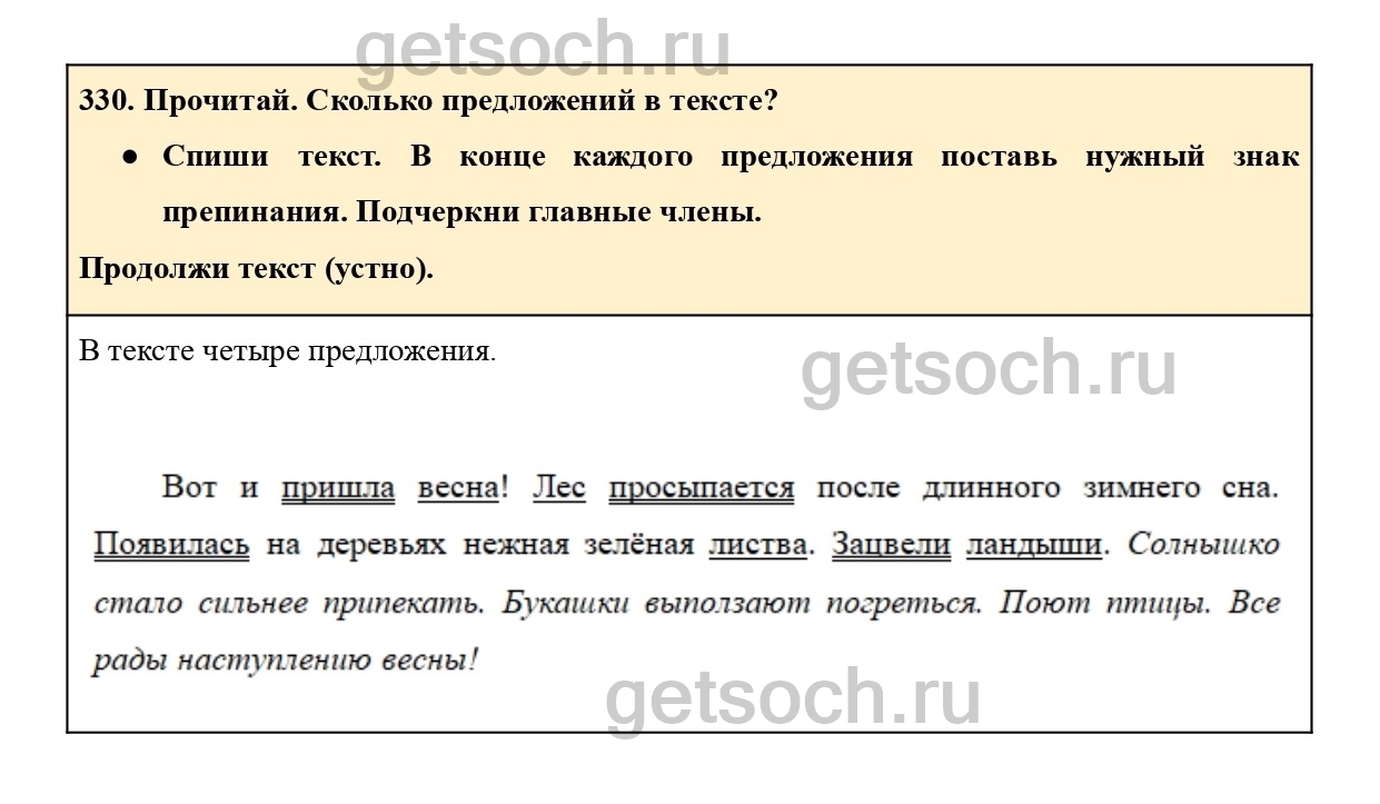 330. Прочитай. Сколько предложений в тексте?
