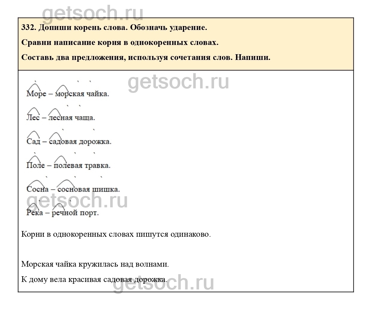 Рассмотрим ответы на Упражнение 332 из учебника по русскому языку для 2 класса Рамзаевой