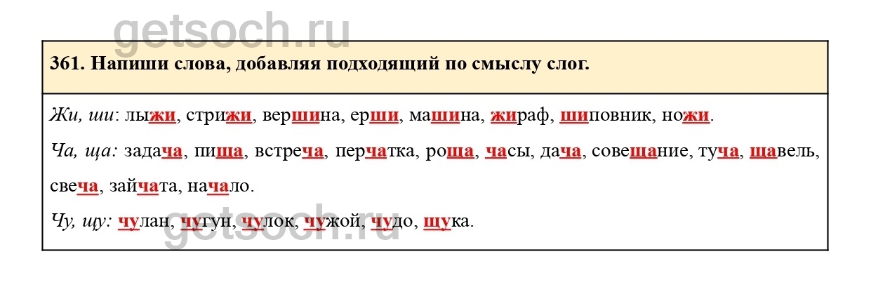 361. Напиши слова, добавляя подходящий по смыслу слог.
