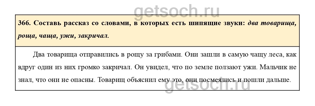 366. Составь рассказ со словами, в которых есть шипящие звуки: два товарища,