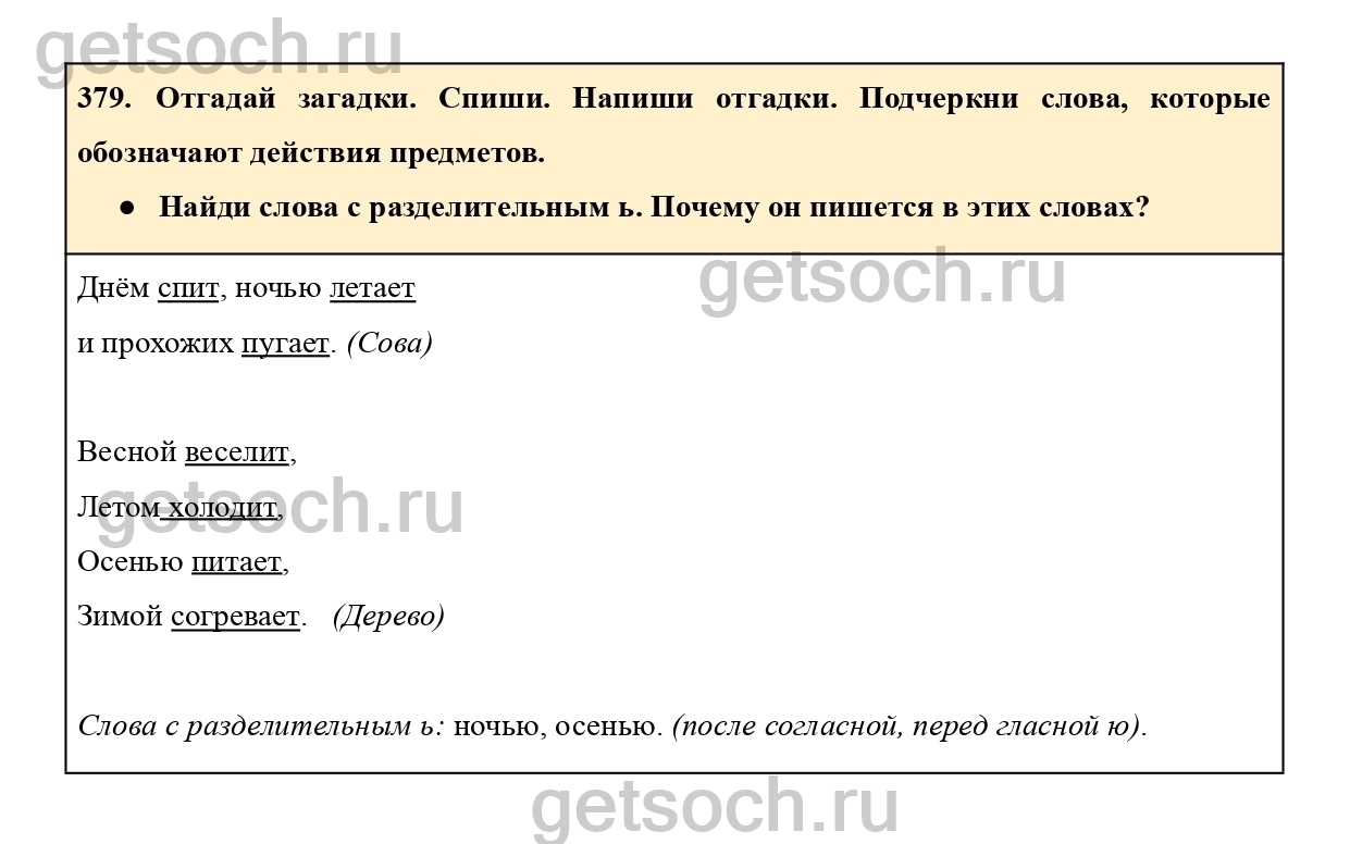 379. Отгадай загадки. Спиши. Напиши отгадки. Подчеркни слова, которые