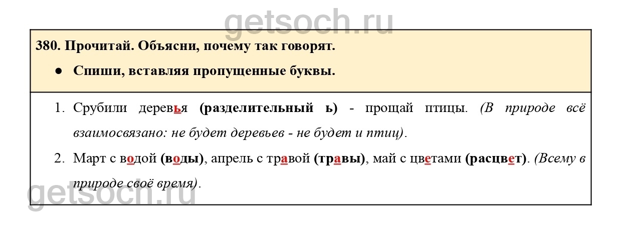 Рассмотрим ответы на Упражнение 380 из учебника по русскому языку для 2 класса Рамзаевой