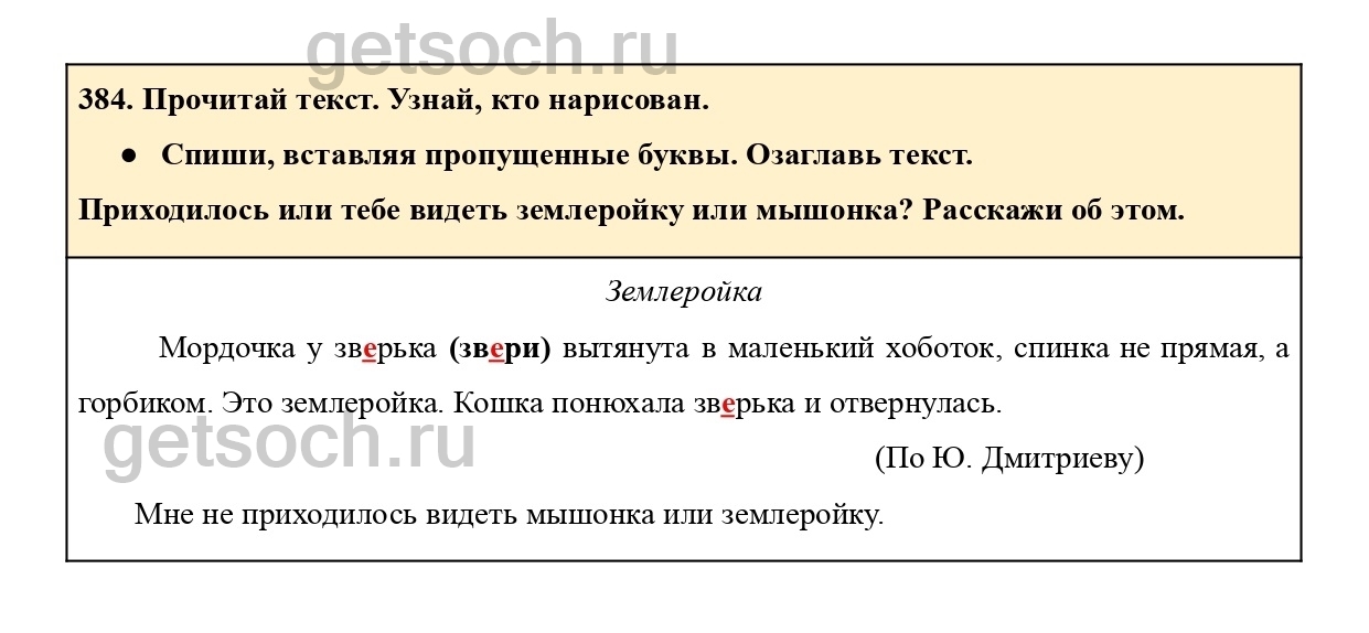 Рассмотрим ответы на Упражнение 384 из учебника по русскому языку для 2 класса Рамзаевой