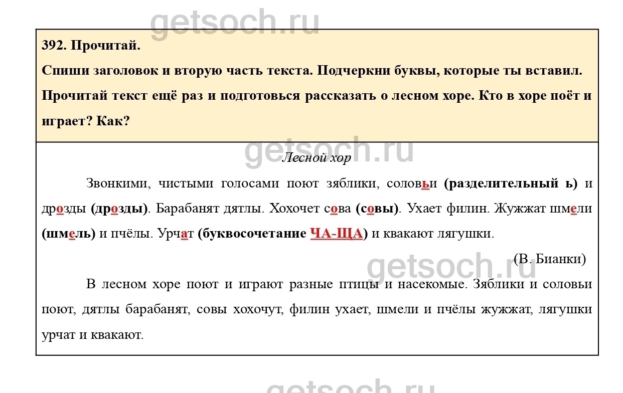 Рассмотрим ответы на Упражнение 392 из учебника по русскому языку для 2 класса Рамзаева