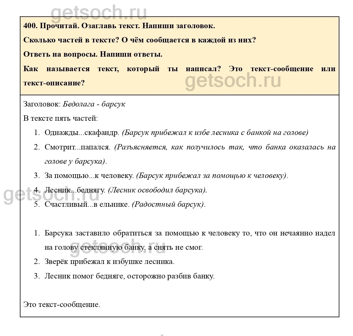 Рассмотрим ответы на Упражнение 400 из учебника по русскому языку для 2 класса Рамзаева