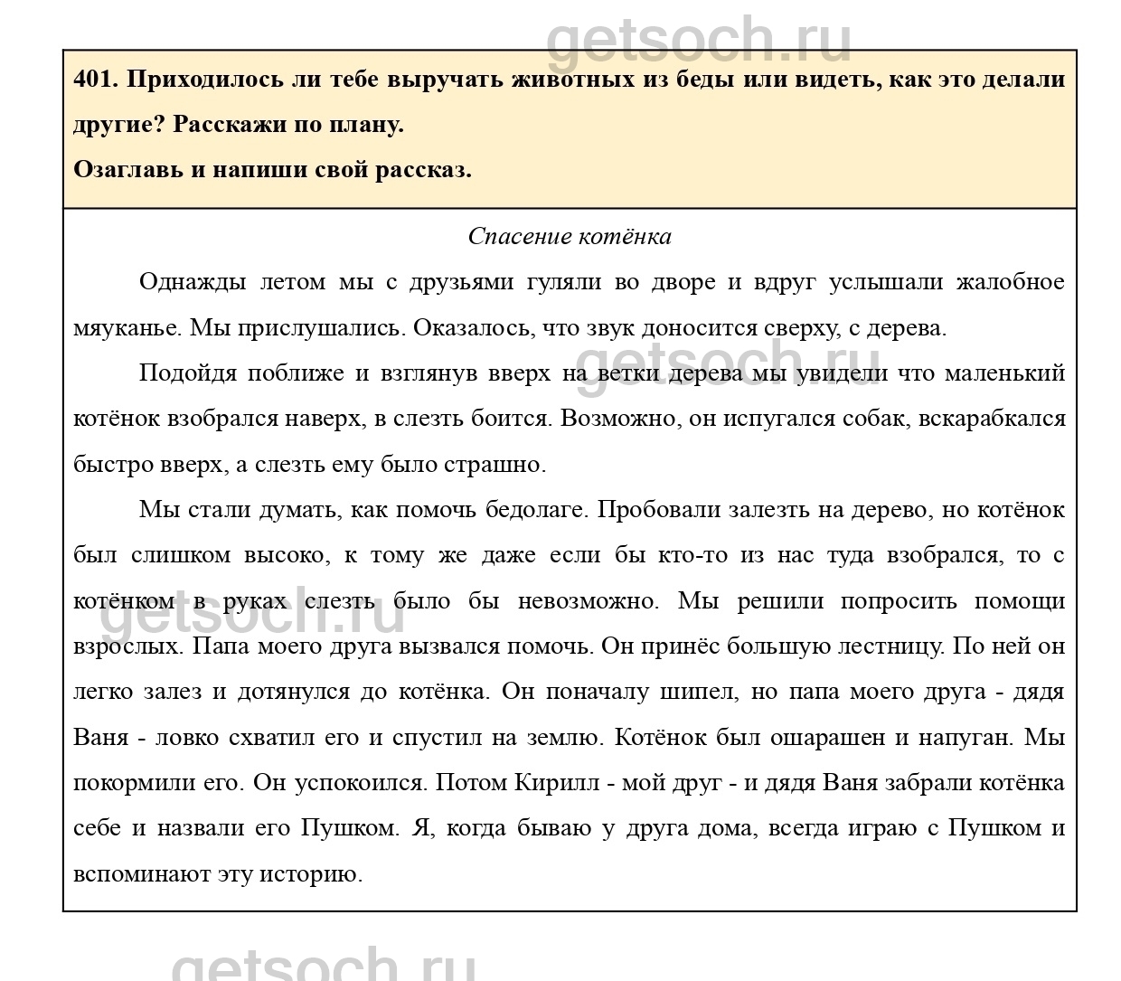 Рассмотрим ответы на Упражнение 401 из учебника по русскому языку для 2 класса Рамзаева