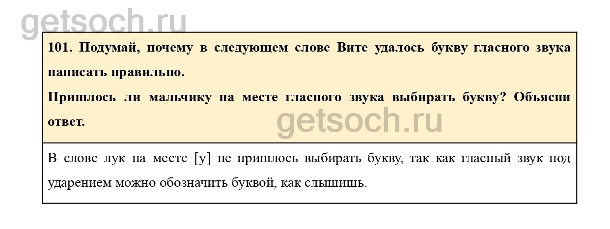 101. Подумай, почему в следующем слове Вите удалось букву гласного звука написать правильно.