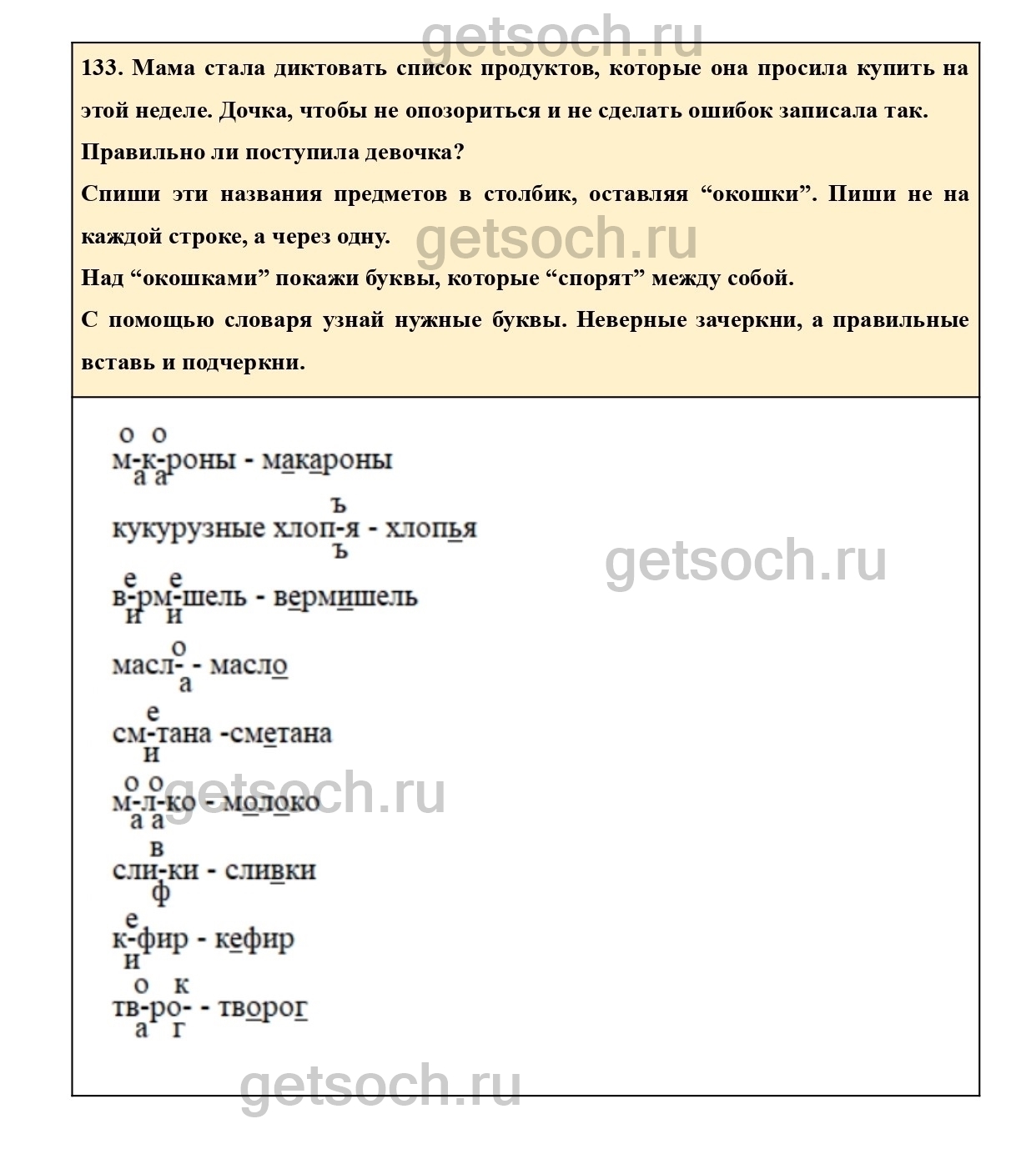 Рассмотрим ответы на Упражнение 133 из учебника по русскому языку для 2 класса Соловейчик