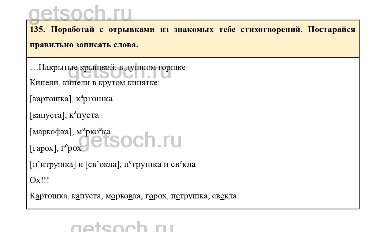 Рассмотрим ответы на Упражнение 135 из учебника по русскому языку для 2 класса Соловейчик