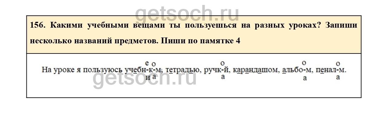 156. Какими учебными вещами ты пользуешься на разных уроках? Запиши несколько названий предметов. Пиши по памятке 4