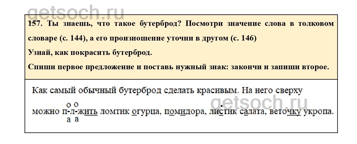 Рассмотрим ответы на Упражнение 157 из учебника по русскому языку для 2 класса Соловейчик