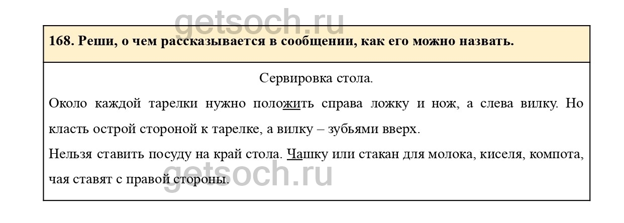 Рассмотрим ответы на Упражнение 168 из учебника по русскому языку для 2 класса Соловейчик