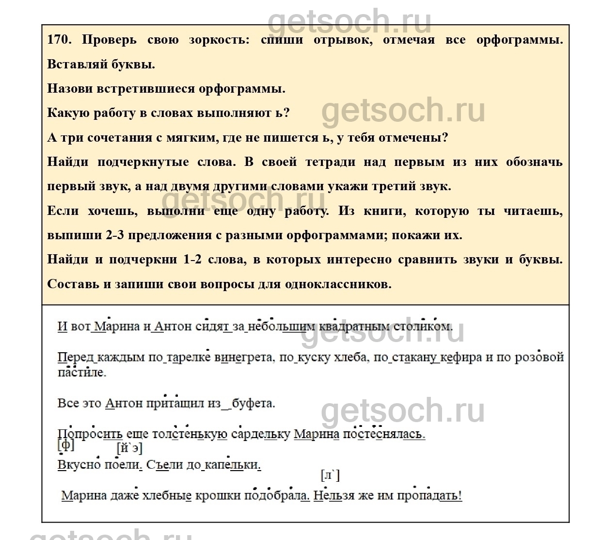 Рассмотрим ответы на Упражнение 170 из учебника по русскому языку для 2 класса Соловейчик