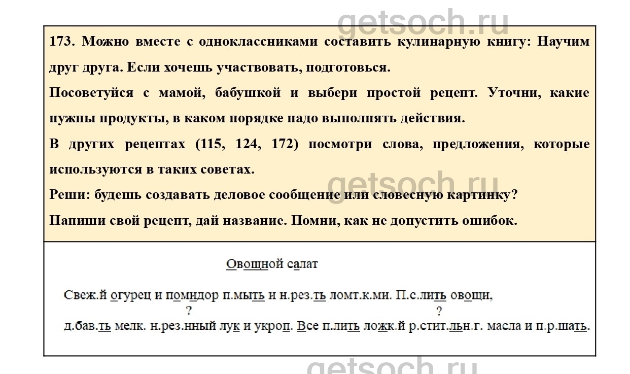 173. Можно вместе с одноклассниками составить кулинарную книгу: Научим друг друга. Если хочешь участвовать, подготовься.