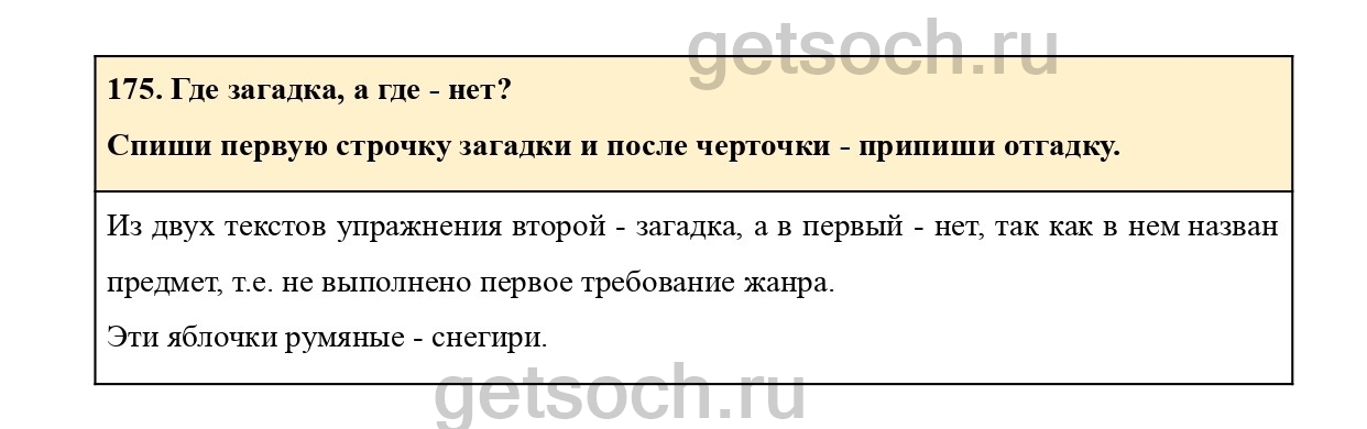 Рассмотрим ответы на Упражнение 175 из учебника по русскому языку для 2 класса Соловейчик