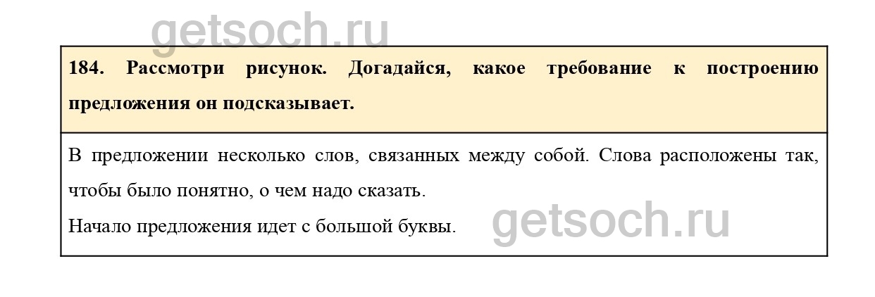 184. Рассмотри рисунок. Догадайся, какое требование к построению предложения он подсказывает.