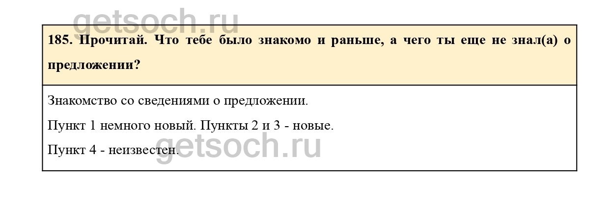 185. Прочитай. Что тебе было знакомо и раньше, а чего ты еще не знал(а) о предложении?