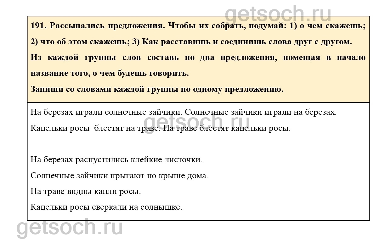 Рассмотрим ответы на Упражнение 191 из учебника по русскому языку для 2 класса Соловейчик