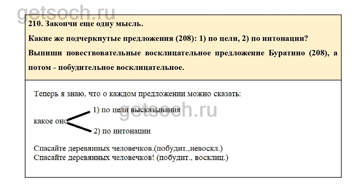 Выпиши повествовательные восклицательное предложение Буратино (208), а потом – побудительное восклицательное.