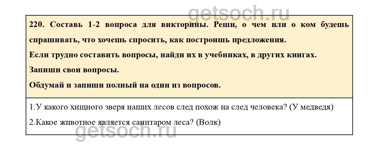 220. Составь 1-2 вопроса для викторины. Реши, о чем или о ком будешь спрашивать, что хочешь спросить, как построишь предложения.