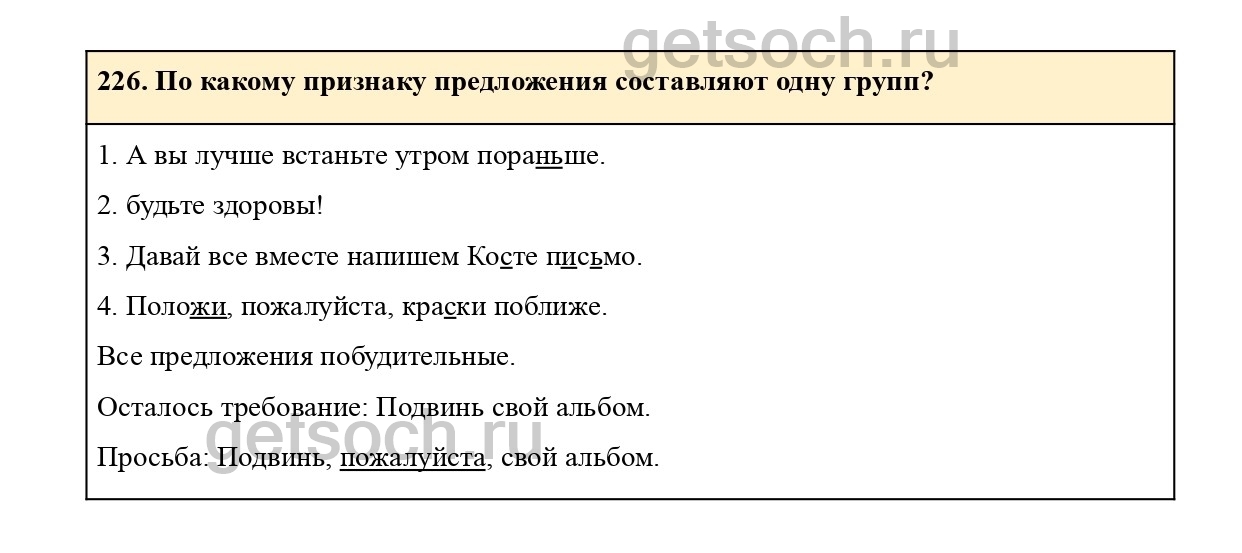 226. По какому признаку предложения составляют одну групп?