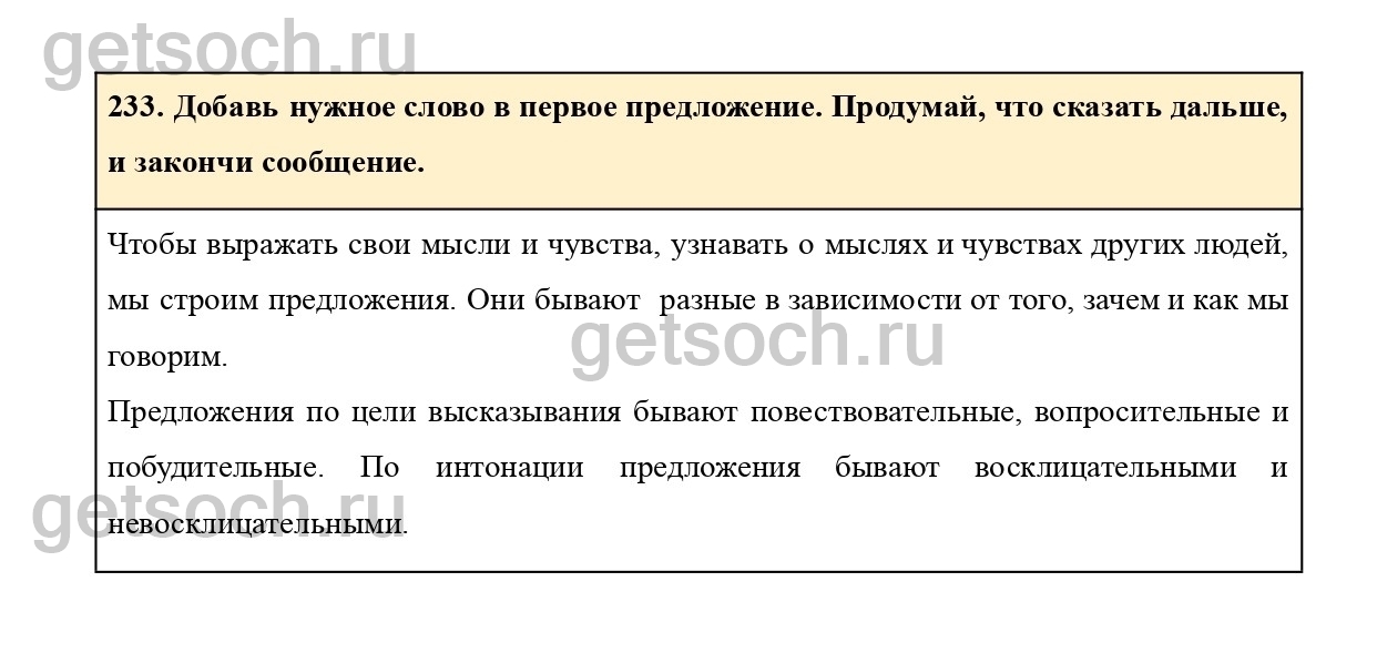 233. Добавь нужное слово в первое предложение. Продумай, что сказать дальше, и закончи сообщение.
