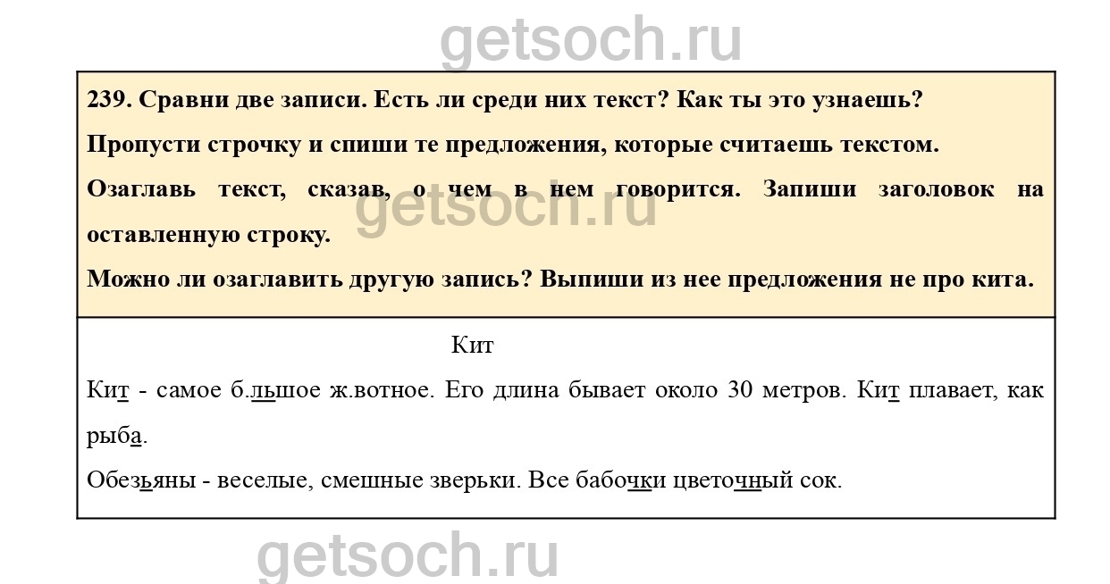 Рассмотрим ответы на Упражнение 239 из учебника по русскому языку для 2 класса Соловейчик