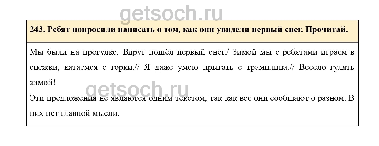 243. Ребят попросили написать о том, как они увидели первый снег. Прочитай.