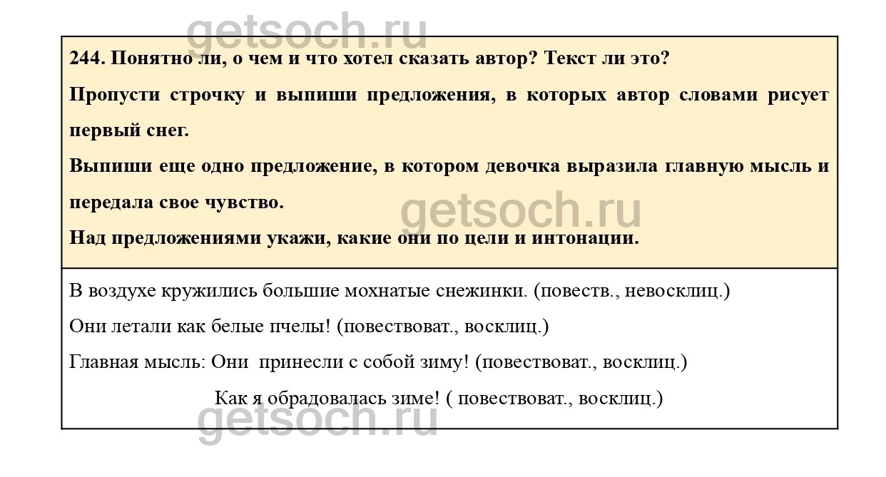 Рассмотрим ответы на Упражнение 244 из учебника по русскому языку для 2 класса Соловейчик