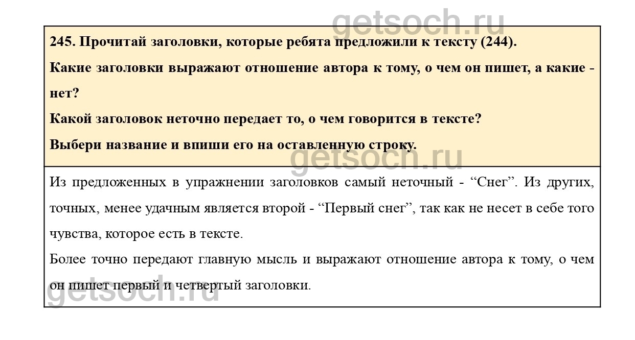245. Прочитай заголовки, которые ребята предложили к тексту (244).