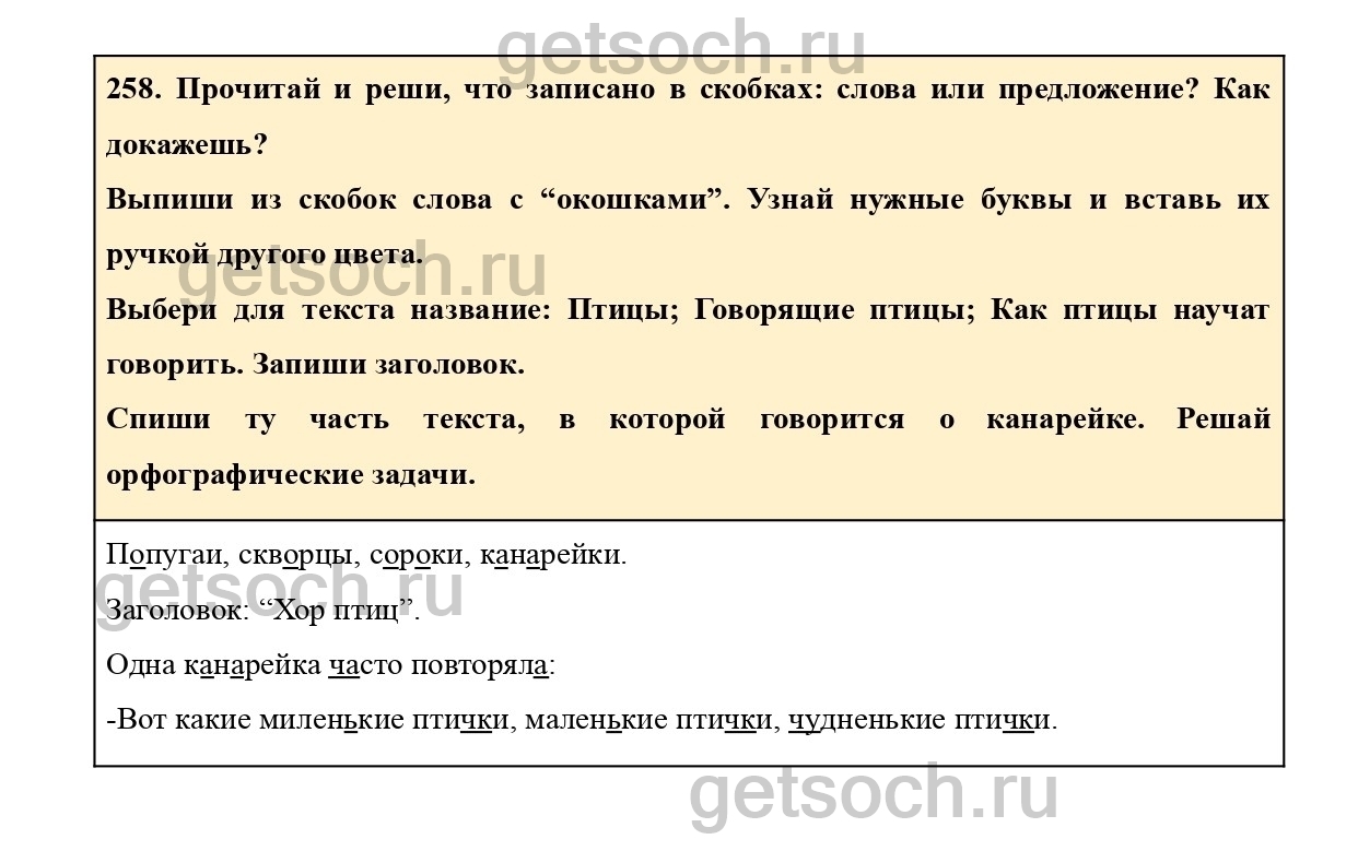 Рассмотрим ответы на Упражнение 258 из учебника по русскому языку для 2 класса Соловейчик