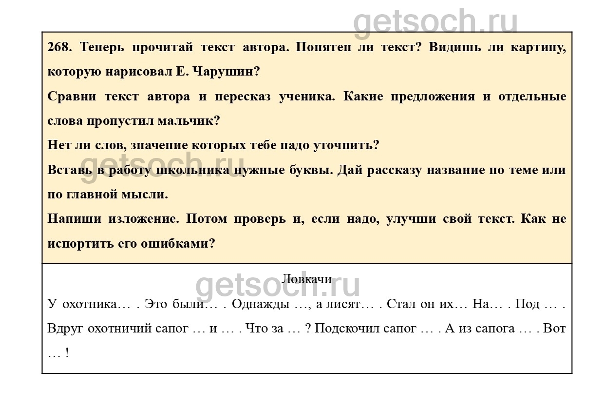 268. Теперь прочитай текст автора. Понятен ли текст? Видишь ли картину, которую нарисовал Е. Чарушин?