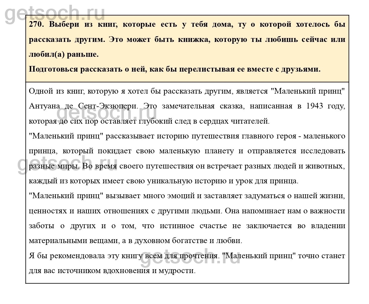 270. Выбери из книг, которые есть у тебя дома, ту о которой хотелось бы рассказать другим. Это может быть книжка, которую ты любишь сейчас или любил(а) раньше.