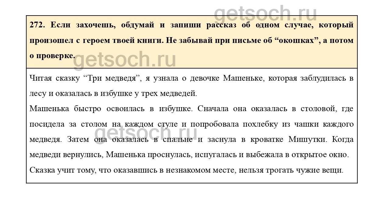 272. Если захочешь, обдумай и запиши рассказ об одном случае, который произошел с героем твоей книги. Не забывай при письме об “окошках”, а потом о проверке.