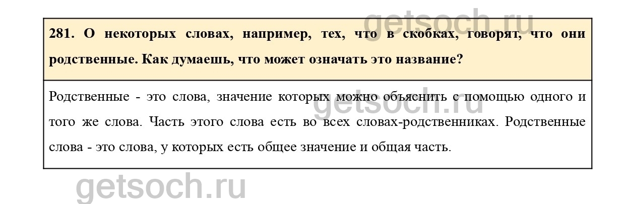 281. О некоторых словах, например, тех, что в скобках, говорят, что они родственные. Как думаешь, что может означать это название?