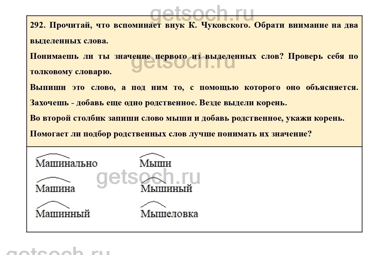 292. Прочитай, что вспоминает внук К. Чуковского. Обрати внимание на два выделенных слова.
