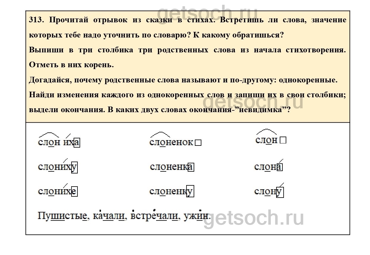 Рассмотрим ответы на Упражнение 313 из учебника по русскому языку для 2 класса Соловейчик
